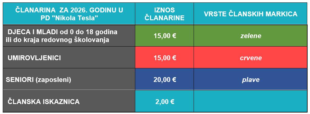 Dokaz o uplati članarine potrebno je dostaviti na mail Društva pd.nikola.tesla@hps.hr ili osobno na sastanku Društva, kako bi se pripremila planinarska iskaznica, ovjerena markicom HPS-a za tekuću godinu.